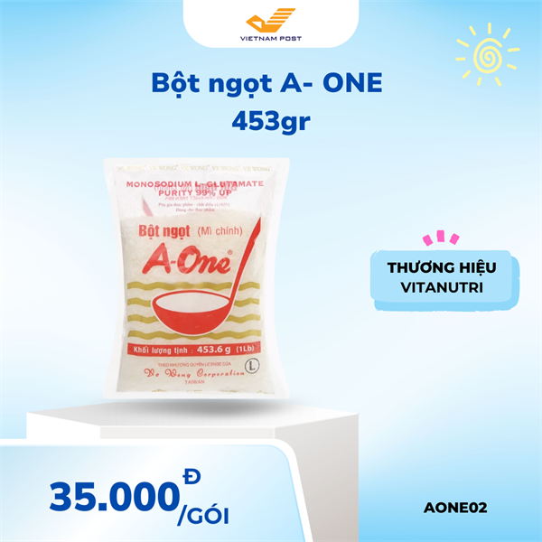 Bột ngọt hạt lớn A-one đã không còn xa lạ với người dùng Việt Nam. Sản phẩm bột ngọt hạt lớn A-One 453.6g đến từ thương hiệu này cũng là một sự lựa chọn quen thuộc.