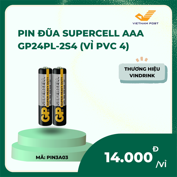 Pin Đũa Supercell AAA GP24PL - Lựa Chọn Hoàn Hảo Cho Thiết Bị Của BạnMô tả sản phẩm:Pin đũa Supercell AAA GP24PL là sản phẩm chất lượng cao từ thương hiệu GP Batteries, cung cấp nguồn năng lượng ổn định và mạnh mẽ cho các thiết bị điện tử của bạn. Với hiệu suất đáng tin cậy và thiết kế tiện lợi, pin đũa Supercell AAA là lựa chọn hoàn hảo cho mọi nhu cầu sử dụng hàng ngày.