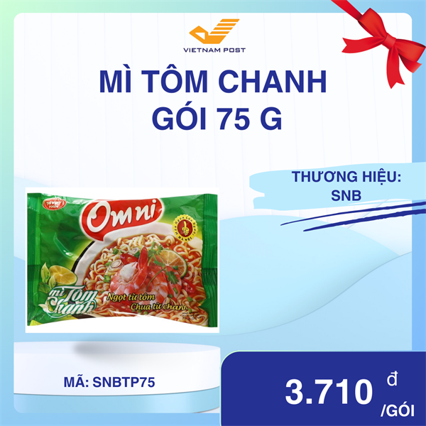 Mì tôm chanh Omni gói 75gMì tôm chanh Omni gói 75g được sản xuất từ những nguyên liệu cao cấp, chọn lọc. Sản phẩm được sản xuất trên dây chuyền công nghệ hiện đại, các công đoạn sản xuất đều được thực hiện dưới sự giám sát chặt chẽ của các chuyên gia, đảm bảo tạo ra sản phẩm an toàn và có chất lượng cao nhất.