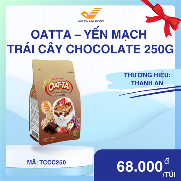 Yến Mạch Trái Cây Socola Otta là một sự kết hợp tuyệt vời giữa yến mạch nguyên cám và các loại trái cây tươi ngon như cherry, dâu tây, táo và nho, được nhập khẩu từ Úc, New Zealand và Châu Âu. Sản phẩm không chỉ mang lại hương vị thơm ngon mà còn cung cấp nhiều lợi ích dinh dưỡng cho người tiêu dùng, là lựa chọn lý tưởng cho bữa ăn sáng nhanh chóng và bổ dưỡng.Được sản xuất trên dây chuyền công nghệ hiện đại từ Anh Quốc, Oatta yến mạch trái cây Socola được nướng mà không chiên, giúp giữ lại hương vị tự nhiên và chất dinh dưỡng của nguyên liệu. Với chỉ 1 phút chuẩn bị, bạn có thể có ngay một bữa ăn ngon miệng mà không tốn nhiều thời gian.Yến Mạch Trái Cây Socola Otta không chỉ ngon mà còn được bổ sung các chất dinh dưỡng cần thiết như chất xơ, sắt, canxi, vitamin D3 và vitamin E.