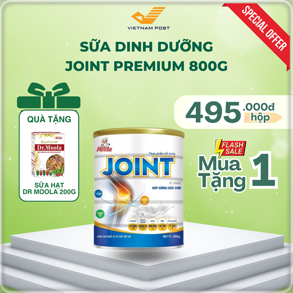 Thông tin dinh dưỡng sản phẩm:Sữa bột tan nhanh, maltodextrine, đạm sữa tinh chế, dầu hạt cải, Collagen Type II, tribasic calcium phosphate, Mufa, Pufa, Lysine, đường Isomalt, prebiotic (Inulin/Fos), hợp Vitamin (Retinyl Acetat (Vitamin A), Cholecalciferol (Vitamin D), Dl-alpha tocopheryl acetat (Vitamin E), acid L-ascorbic (Vitamin C), thiamin hydrocloride (Vitamin B1), riboflavin (Vitamin B2), acid nicotinic (Vitamin B3), D-pantothenic acid (Vitamin B