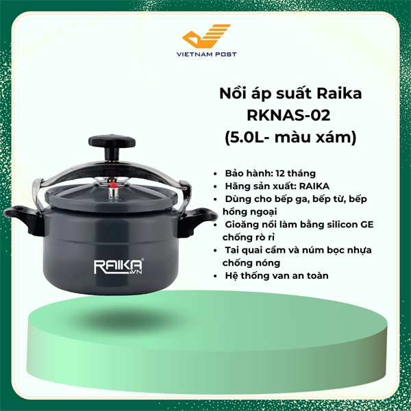 Nồi áp suất Raika RKNAS-02 (5.0L- màu xám)
