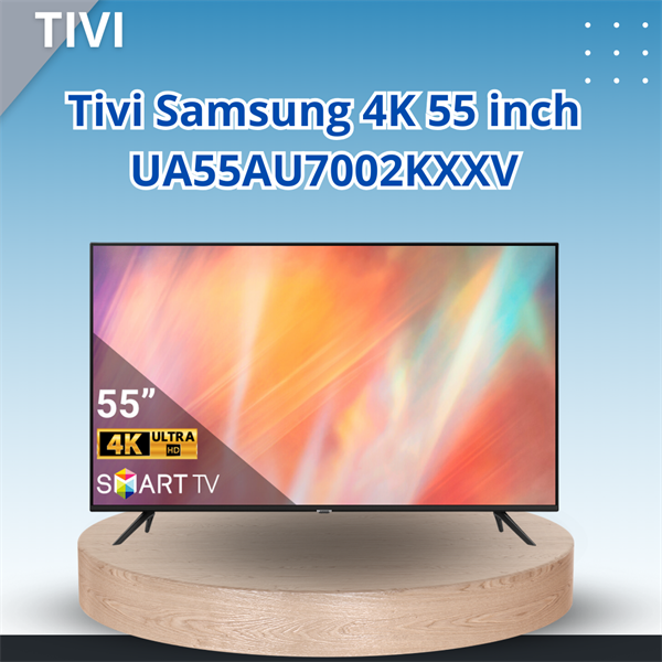 Smart Tivi Samsung 4K 55 inch UA55AU7002 nâng tầm trải nghiệm xem với khung hình 4K sắc nét, bộ xử lý Crystal 4K cho màu sắc tái tạo sống động, các chi tiết rõ ràng nhờ công nghệ Contrast Enhancer, hệ điều hành Tizen OS 6.0 thân thiện, làm việc tại nhà thuận tiện cùng chế độ máy tính PC trên tivi.